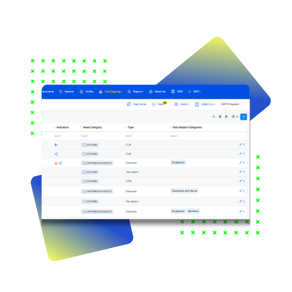 Map every process, dataset, and data flow in one central place to understand where personal data originates, how it’s used, and who’s responsible for it.